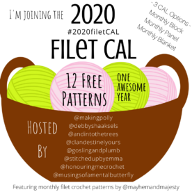 - Using the yarn weight and hook noted below, one filet CAL block is 18 x 20 inches (46 x 51 cm) and your finished 9-block blanket will be 55 x 61 inches (138 x 155 cm), excluding the pom-pom fringe.